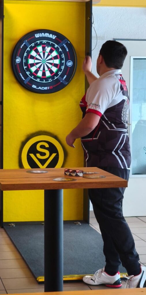 Konstanz, Highscores, sichere Checkouts. Flo setzte mit einer starken 180 ein klares Ausrufezeichen, dazu ein Average von 64,5. Am Ende ein verdienter 3:1-Sieg.