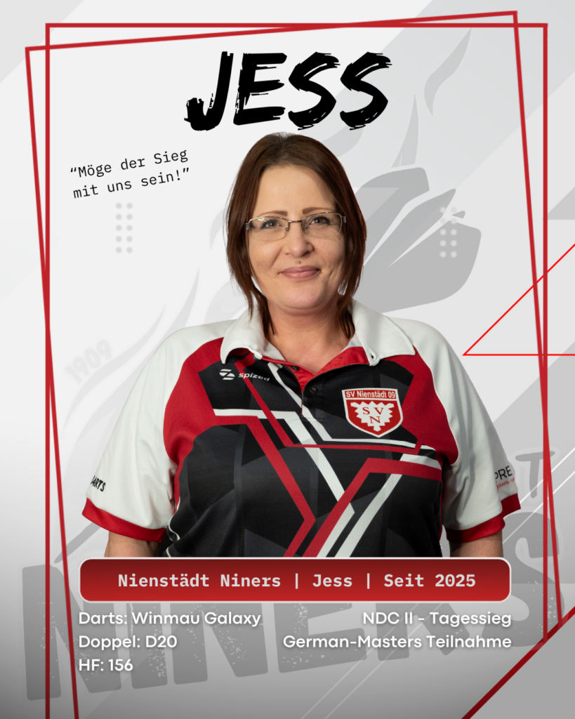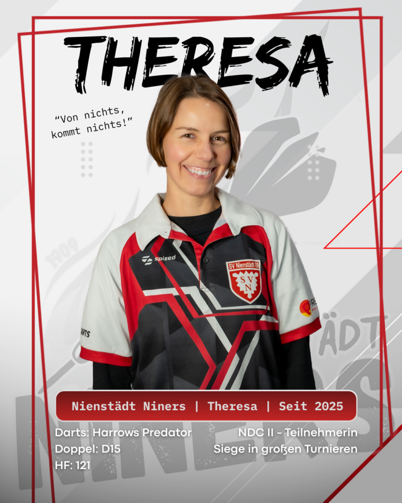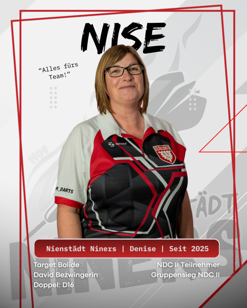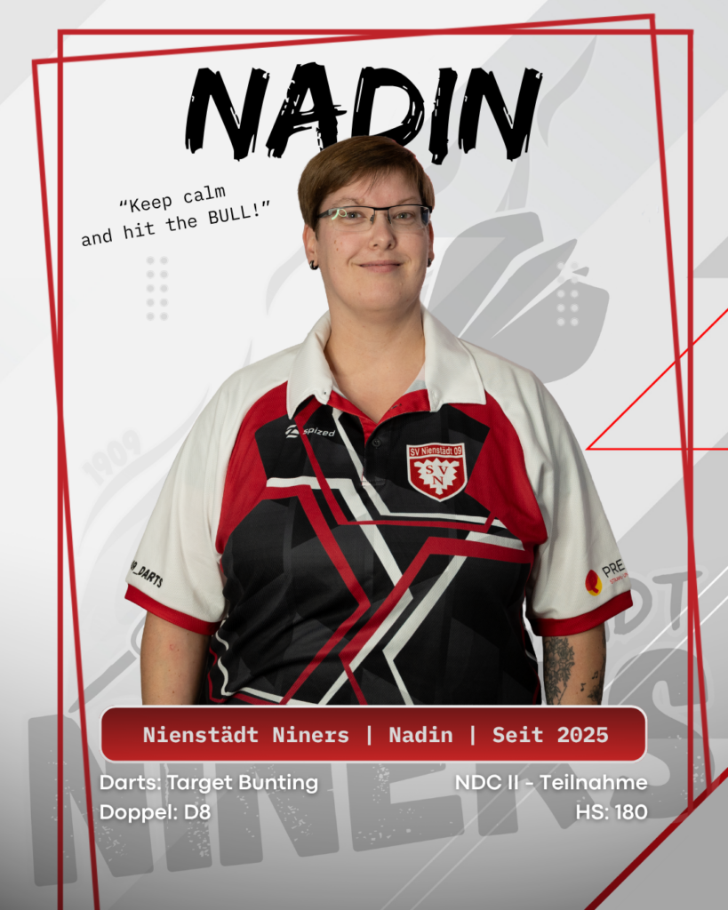 Ihre sicheren Darts und die ruhige Art am Oche machen sie zu einer wichtigen Spielerin der Niners Ladyz – eine Entwicklung, die definitiv Lust auf mehr macht.