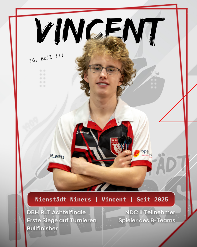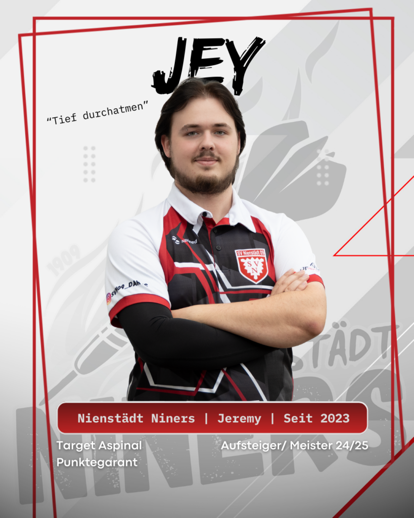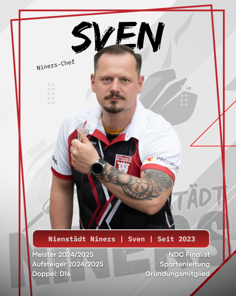 „Auch ein guter E-Darter!“, aber bei den Niners wirft er Darts mit Stil, und das sehr erfolgreich. Hat sich direkt in die Mannschaft katapultiert, ein absoluter Punktegarant der Niners.